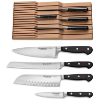Messensets: In diverse samenstellingen van verschillende merken. Het aantal en ook soorten messen zijn verschillend in de sets.