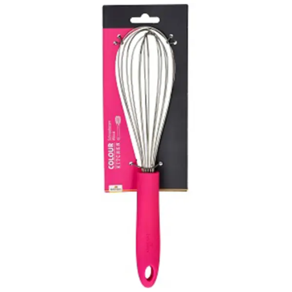 Birkmann Garde Knalroze-29cm : De klopper is het perfecte bak accessoire voor iedereen die van koken en bakken houdt. De roestvrijstalen kop en ergonomische siliconen handgreep zorgen voor optimaal comfort en efficiëntie tijdens het kloppen, roeren of mixen – of je nu slagroom, luchtig beslag of gladde sauzen maakt.