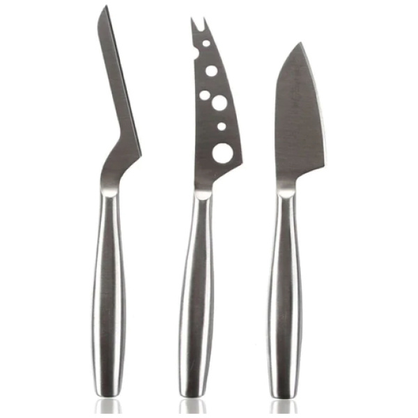 Met de Kaasmessenset Copenhagen heb je een stijlvolle en functionele set in huis. Het handvat van deze messen is hol van binnen, dus licht van gewicht. De drie kaasmessen zijn volledig van roestvrijstaal gemaakt, waardoor ze na gebruik gewoon de vaatwasser in kunnen. Zo kun je nog jarenlang de lekkerste kazen serveren.
