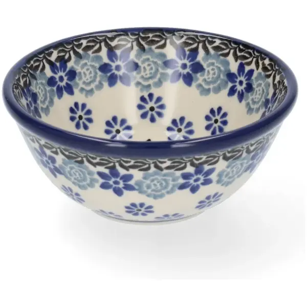 Bunzlau Castle Kom Belle-Fleur-150ml : Het Belle Fleur decor is rijk voorzien van verschillende soorten bloemen in diverse kleurentinten. De donkerblauwe bloemen wisselen af met blauwgrijze en de zwarte sierlijke bladeren. De stippen maken dit decor sierlijk maar toch stoer.