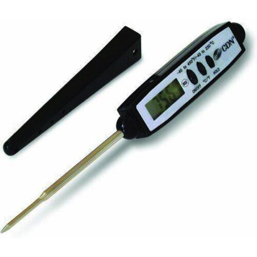 CDN Digitale Kernthermometer DT450X: Deze digitale thermometer – kernthermometer van CDN DT450X is perfect voor het indicatief meten van de kerntemperatuur in bijvoorbeeld vlees, vis of gevogelte. De range van de thermometer gaat van -40 tot +230 C. Waterproof en duurzaam met een RVS punt.