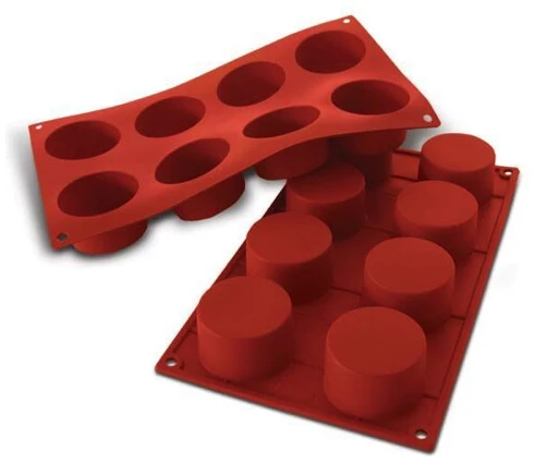 Classic Cilindro SF028: Bakvorm van Silikomart voor het maken van Cilindro. De flexibele bakvorm is ook gemakkelijk te gebruiken en is bedoeld voor veelvuldig gebruik. De Silikomart siliconen bakvorm Cilindro bevat 8 cilinders. Elk van de vorm is ø 60 mm en heeft een inhoud van 90 ml. De antikleef- eigenschappen van het silicone maakt dat de Cilindro na het bakken goed los gaat. Bak tot 8 cakejes of gebruik het voor mousse of ijs. De flexibele bakvorm is ook gemakkelijk te gebruiken