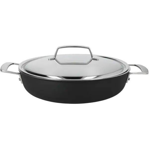 Deze Demeyere Alu Pro-5 Ceraforce Hapjespan-28cm reageert supersnel zodra je overschakelt naar een andere fornuis-stand. De pan is ook even snel weer op de juiste temperatuur nadat er koude ingrediënten, zelfs recht uit de koelkast, in gaan. Geschikt voor alle kookplaten, zeker voor inductie. Het stijlvol vormgegeven deksel past perfect. Hierdoor blijven warmte en stoom beter bewaard en verspil je geen energie. Het deksel is net als de stevige grepen vervaardigd uit roestvrij staal met Silvinox®. Je maakt het in een-twee-drie schoon en het blijft blinken. Bovendien contrasteert het prachtig met de matzwarte pot in gesmeed aluminium. Je kan hetzelfde deksel gebruiken op elke Demeyere pan met 28 centimeter diameter.