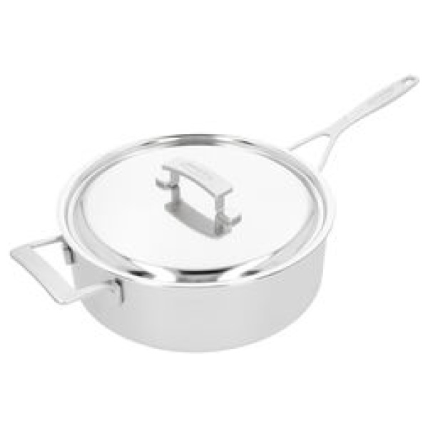 Demeyere Industry-5 Sauteerpan 28cm-5.7L : In onze roestvrijstalen Industry 5 lage sauteuse braad je je vlees, gevogelte, groenten en schaaldieren gelijkmatig aan. Na toevoeging van water, bouillon of wijn laat je ze verder garen onder deksel. Ideaal voor gevuld varkensgebraad, een aromatische bouillabaisse of een smaakvolle chili sin carne. Dankzij de grote oppervlakte (28 cm) is deze professionele hapjespan uit de Industry 5 collectie ook ideaal voor het snel inkoken van basissauzen of kreeftenbisque bijvoorbeeld.