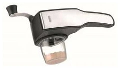 Gefu Trommelrasp Pecorino 2-schijven maakt de Laser Cut trommelrasp zowel fijn alsook grof raspen mogelijk. Harde kaas, noten of chocolade gewoon in de opvultrechter doen, aan de zwengel draaien – en klaar. Praktisch is het afsluitbaar bewaarreservoir, waarin ook – grof of fijn – rechtstreeks geraspt kan worden. – 2 verwisselbare Laser Cut snijtrommels – Afsluitbaar bewaarreservoir – Direct in het bewaarreservoir raspen is mogelijk – Demonteerbaar voor eenvoudige reiniging – Vaatwasmachinebestendig