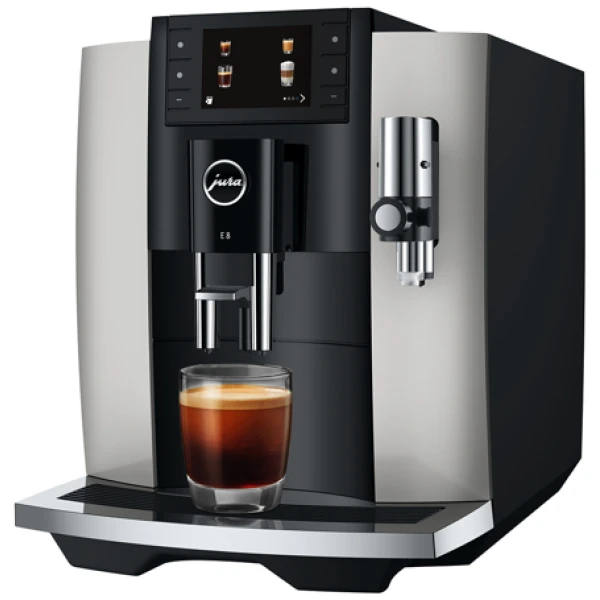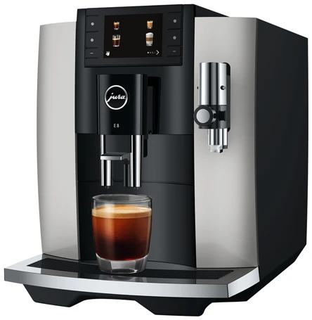 De jongste generatie van de E8 beantwoordt op alle vlakken aan de hoge eisen, die worden gesteld aan de verdere ontwikkeling van het succesvolste model van de JURA volautomaten. Deze kan rekenen op enthousiasme dankzij de uitstekende koffieresultaten, onderscheidt zich door de zeer eenvoudige bediening en geeft met het moderne, slanke design een visitekaartje af. Door de modernste techniek kunnen 17 verschillende koffieklassiekers en -specialiteiten met één druk op de knop worden bereid in de beste koffiebarkwaliteit.