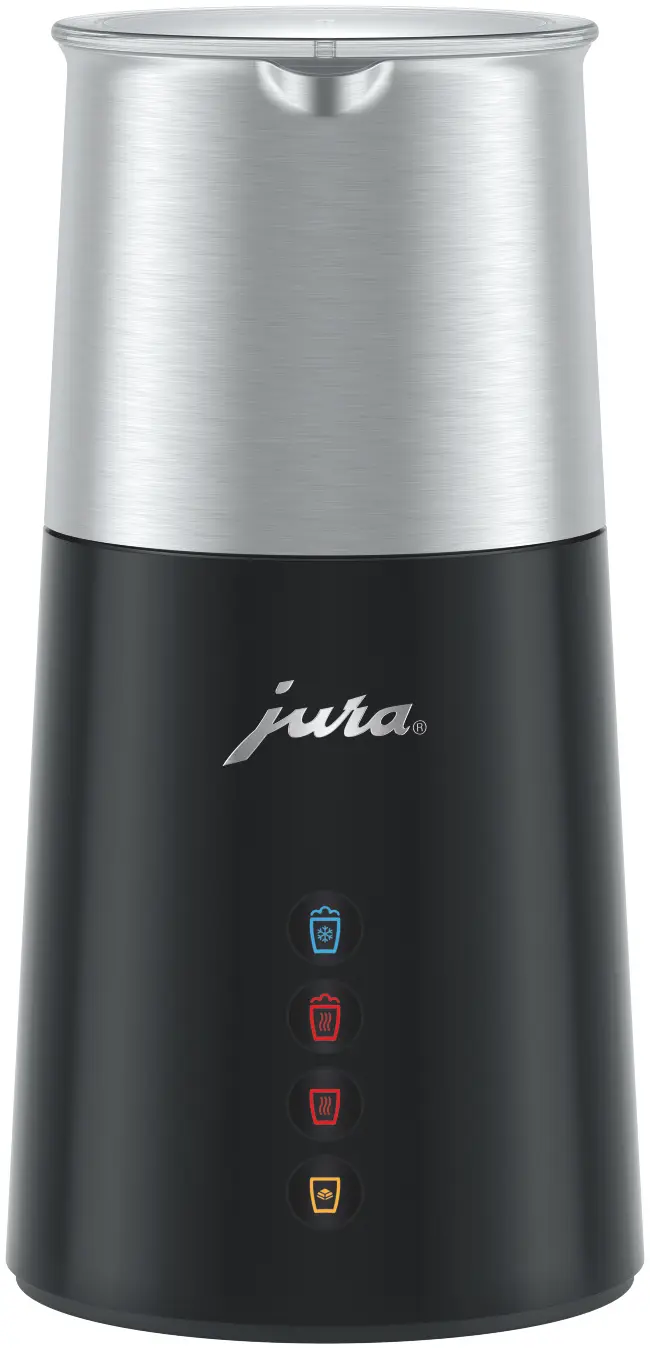 Het ontwerp van de melkopschuimer maakt indruk met zijn elegante en functionele vormgeving. Met slechts vier symbolen is de bediening eenvoudig en direct. De conische basis zorgt voor een stevige stand en houdt de melkhouder vast, waardoor een stijlvol en harmonieus geheel ontstaat. Met de licht gebogen schenktuit kan de opgeschuimde melk of chocolademelk precies en netjes worden ingeschonken. De melkopschuimer Hot & Cold is de ideale aanvulling op de Pure-Coffee-volautomaten van JURA en zal snel een onmisbare metgezel worden bij de koffiebereiding.