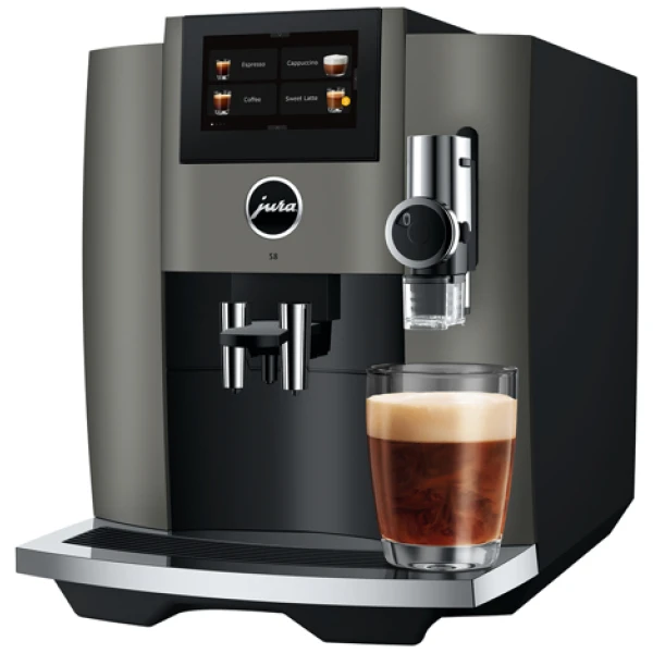 Jura S8 Dark Inox-EB: Innovatie en koffiegenot in harmonieuze elegantie De elegante S8 brengt zowel koffieliefhebbers als estheten in vervoering. Het apparaat straalt al op het eerste gezicht een uitzonderlijke klasse uit dankzij het sculpturale design, de hoogwaardige materialen en het uitzonderlijke vakmanschap. Nieuwe mogelijkheden voor perfect genot worden gecreëerd door innovatieve technologieën.