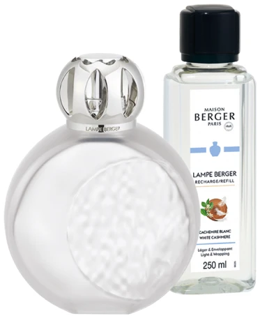 Lampe Berger Giftset Astral Givré: Stijg op naar de kosmos met deze Lampe Berger met haar ruimtelijke design en zuivere huisparfum Cachemire Blanc.