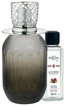 De bijzonder geraffineerde, decoratieve Lampe Berger Giftset Evanescence Grise heeft een tijdloze uitstraling. De ontwerper Serge Rusak heeft glasbewerking onder de aandacht willen brengen door er zijn moderne en bijzondere stijl op toe te passen. De vormgeving van de houder van de Lampe Berger is bijzonder verfijnd en heeft op een aantal punten een textuurspel van diamantpunten dat aan de oorspronkelijke modellen van het merk herinnert.