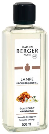 Het Lampe Berger Huisparfum Étoile-d-Orient-500ml voor in uw Lampe Berger, onderdeel van de orientaalse geurfamilie van Maison Berger Paris, is een sensueel en verleidelijk parfum met een oosterse tint.