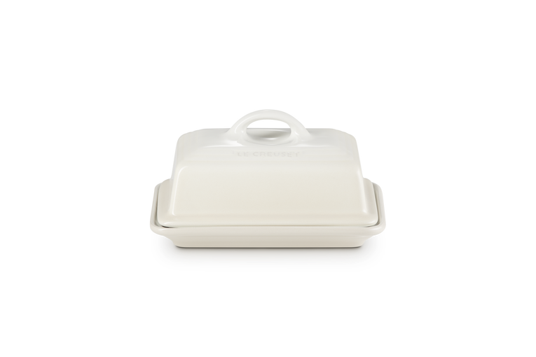 Le Creuset Botervloot-Meringue : Het zijn de kleine dingen die het doen, zoals deze botervloot. De constructie van aardewerk is zowel geschikt voor de koelkast als voor de magnetron, zodat u zowel uw boter koud kunt bewaren als warm kunt maken om het gemakkelijk smeerbaar te maken. In de zomer komt hij ook goed van pas omdat het aardewerk langer koel blijft.