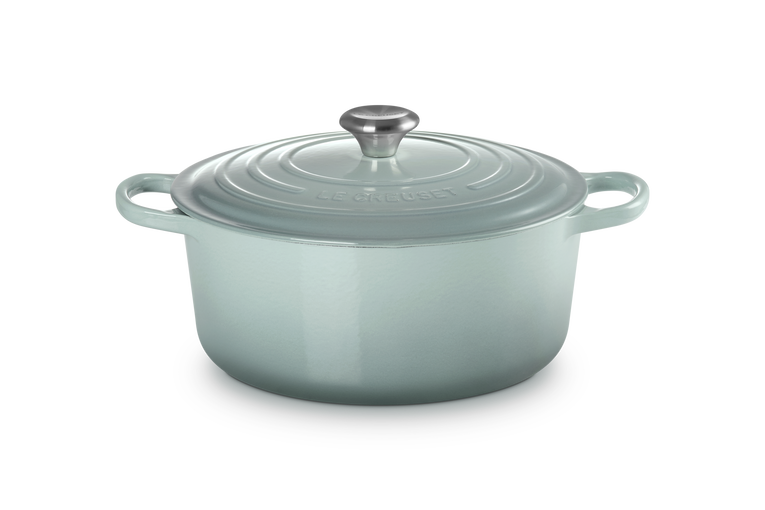 De seasalt Signature braadpan van Le Creuset heeft een diameter van 28 cm. De ronde pan van geëmailleerd gietijzer heeft een inhoud van 6,7 liter, bedoeld voor 6-8 personen. De braad-/ stoofpan heeft extra grote grepen.