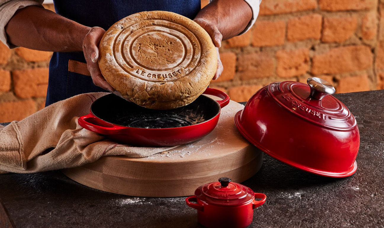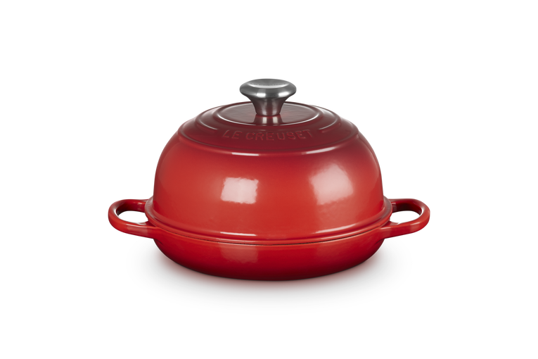 Le Creuset Broodpan Signature Kersenrood-24cm: Thuis het perfecte brood maken was nog nooit zo eenvoudig. De speciaal ontwikkelde Broodpan is gemaakt van ons legendarische gietijzer voor superieure warmteverdeling en ontworpen voor resultaten van bakkerijkwaliteit. Een koepelvormig deksel houdt stoom vast en laat het circuleren zodat de inhoud maximaal rijst en heerlijk smaakt. De compacte bodem zorgt voor een gelijkmatige bruin kleurtje en een goudbruin, knapperig korstje, voorzien van het keurmerk met drie ringen. Met een matzwarte geëmailleerde binnenkant en een ergonomische knop en handgrepen bakt u thuis met de broodpan van Le Creuset als een ware meesterbakker.