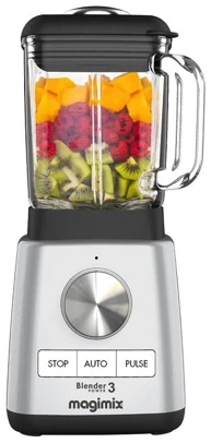Magimix Power Blender 3 Mat-Chroom : Gezond en boordevol vitamines in slechts een handomdraai. Met de Power Blender 3 Mat-Chroom worden uw smoothies, soepen en bijv. pannenkoekenbeslag zeer smeuïg en glad van structuur. U kunt er ook gestampt ijs en snelle ijsdesserts mee maken!
