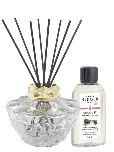 Maison Berger Geurstokjes Giftset Kali-Transparent : Ervaar de schoonheid van de parfumsticks Kali Transparent. Beleef een rijke en boeiende ervaring met Splendeur Vanillée. Het asymmetrische, transparante ontwerp voegt een moderne toets toe aan uw interieur.