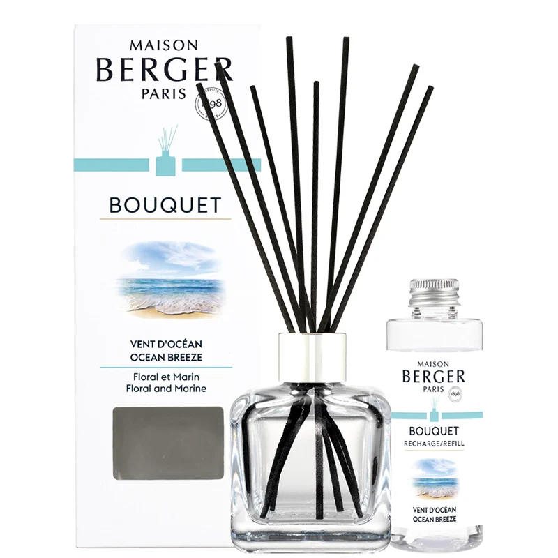 Maison Berger Geurstokjes Giftset Vent-d’Océan: De kracht van een hoge golf en het fruitige asprect van een citrusvrucht.
