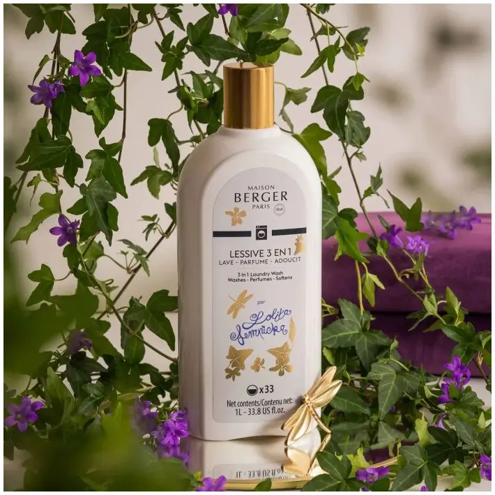 Maison Berger Wasmiddel Lolita Lempicka-1L: Ervaar de luxe en het gemak van wassen met Maison Berger Paris! Het 3-in-1 wasmiddel maakt het wasgoed schoon en zacht dankzij de cellulase in de formule. Ervaar bovendien een intens en langdurig parfum door de micro-ingekapselde parfumtechnologie: het parfum komt vrij tijdens het wassen en het spoelen en zorgt voor een lange zintuiglijke ervaring vanaf het moment dat u het parfum ruikt vanuit de fles, het net gewassen wasgoed uit de wasmachine wordt gehaald, het wasgoed dat hangt te drogen of wordt gestreken tot een heerlijk parfum in de kast waar het wasgoed wordt opgeborgen.