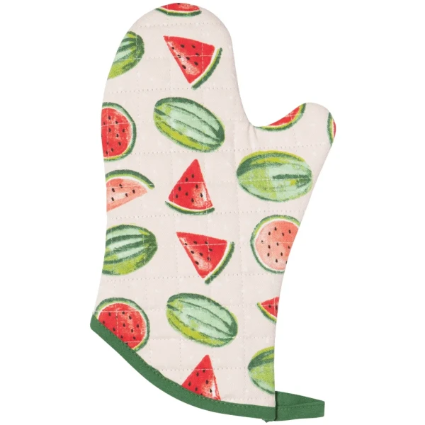 NowDesigns Ovenwant Watermelon: De Now Designs ovenwant is gemaakt van 50% katoen en 50% polyester en is voorzien van een watermeloen design. De ovenhandschoen gebruikt u voor uw handen ter bescherming van hitte van pannen of ovenschalen. De ovenwant is 30 x 13 cm.
