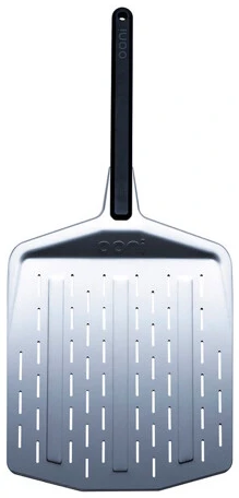 Deze hoogwaardige lichtgewicht pizzaschep van Ooni is ontworpen voor pizza’s tot 35 cm breed en perfect om pizza’s te schuiven, draaien en uit de oven te halen. De dunne rand schuif je eenvoudig onder de pizzabodem en de perforaties zorgen elke keer voor een perfect gebakken pizza, omdat stoom snel kan verdampen en overtollig meel van de pizzabodem valt. De supergladde ribbels en perforaties zorgen samen voor gemakkelijk glijden en een optimale luchtstroom onder de bodem – waarmee ellende met plakkend deeg tot het verleden behoort. De pizzaschep is gemaakt van aluminium en is licht in gewicht dus eenvoudig hanteerbaar. De duurzame hard geanodiseerde coating zorgt voor een verhoogde corrosiebestendigheid en een hyperglad oppervlak. De pizzaschep is niet geschikt voor de vaatwasser, na gebruik reinig je deze met wat warm water en sop.