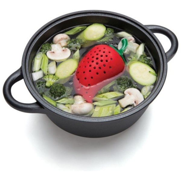 Ototo Chili Herb Infuser: Met Chili hoeft u nooit meer de kruiden uit uw soep te zeven. Ook heeft u geen genante situaties meer waarbij de peterselie nog tussen uw tanden zit! Stop alles om uw gerecht op smaak te maken in deze ‘Chili’ , voeg ‘m toe aan de rest van de ingrediënten in de pan en laat alles maar heerlijk ’trekken’ . Gemakkelijker en leuker kan bijna niet.