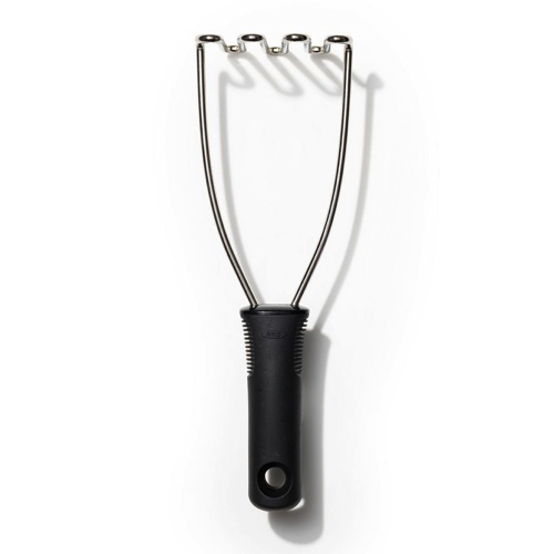 Oxo Aardappelstamper rvs: Met deze aardappelstamper van OXO Good Grips pureer je met gemak aardappels, winterwortels en meer. Dankzij de ovale vorm van de stamper, stamp je eenvoudig tot langs de rand van de pan.