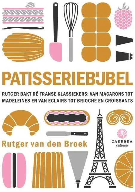 Van tartelettes tot macarons, van eclairs tot madeleines en van croissants tot verfijnde Franse taarten – in Patisseriebijbel vind je alle Franse klassiekers en meer. Met ruim 200 recepten en meer dan 30 technieken voorzien van stap voor stap foto’s, bak jij zelf de allerlekkerste patisserie. De recepten zijn, zoals je van Rutger gewend bent, uitgebreid getest en duidelijk uitgelegd. Voor Patisseriebijbel verbleef hij langdurig in Parijs met maar één doel: de Franse patisserie voor thuisbakkers haalbaar maken!