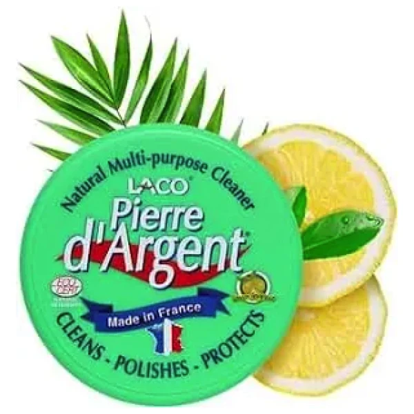 Pierre d’Argent Multi-purpose cleaner-300gr: is een biologisch afbreekbaar reinigingsproduct. Het reinigt zeer grondig, diep en het krast niet. Gemakkelijk te gebruiken op metaal, graniet, marmer, kristal, acryl. Uitermate geschikt voor kookplaten, gelakt hout, toilet, badkamer, roestvrijstaal en koper kookgerei etc.