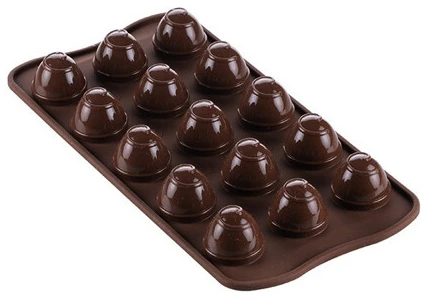 Kleine chocoladetjes die je zullen verrassen met hun originele 3D-vorm! Chocolade heeft dankzij Silikomart geen grenzen meer: elke holte van de vorm is voorzien van een speciale binnenrand die de basis van je creaties een licht afgeronde vorm geeft. Een genot voor het oog en de mond!
