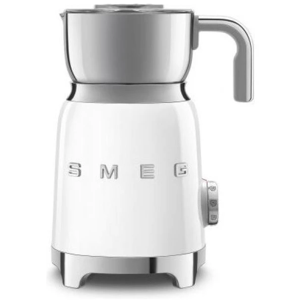 Smeg Melkopschuimer Wit: De traditionele koffiespecialiteiten Cappuccino en Latte Macchiato zijn optimaal te bereiden met de nieuwe melkopschuimer van Smeg net als het fijne schuim voor de nieuwste koffietrend uit Australië, de Flat White Coffee. De melkopschuimer van Smeg ( 600 ml) tovert warme of koude melk vloeibaar romig of zeer stevig schuim naar wens. Met in totaal 6 vooraf ingestelde functies kunnen niet-geschuimde melk en ook warme chocolademelk gemakkelijk worden verwarmd. Met het inductie verwarmingssysteem, zonder te verbranden of schuimen.