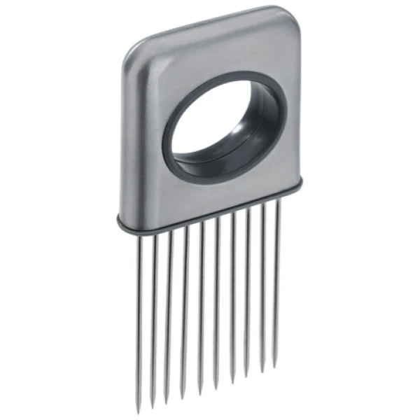 Snijhulp: Deze snijhulp van Westmark is handig bij het snijden van rollade, uien en meer. Dankzij de snijhulp ofwel uienkam worden de vingers veilig beschermd. De hulp heeft 10 prikkers en is gemaakt van geborsteld roestvrij staal.