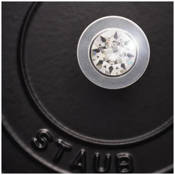 Staub Knop Swarovski: De klassieke STAUB-knop, versierd met een Swarovski®-kristal: geef uw braadpan een sprankelende touch met dit schitterende verzamelobject. Deze unieke combinatie combineert op kunstzinnige wijze de expertise en traditie van twee iconische merken tot één schitterend stukje keukencouture. De knop past perfect bij al uw STAUB gietijzeren producten, ongeacht de kleur, en is geschikt voor een breed scala aan maten van 16 tot 41 centimeter. Klaar om uw favoriete keukengerei te verfraaien?
