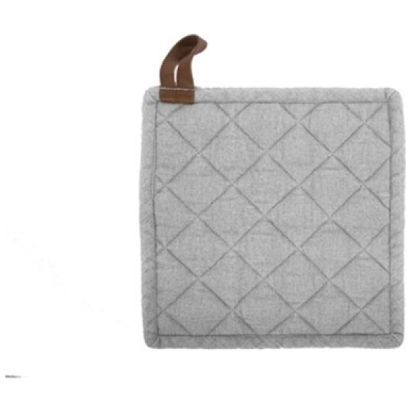 Deze Myrna pannenlappen in Scandinavische stijl zijn gemaakt van 100% katoen en hebben een moderne kleur. Een handig detail zijn de leatherlook ophanglussen. De afmetingen van de pannenlappen zijn 20x20cm. Mooi te combineren met bijpassende theedoeken en ovenwanten.