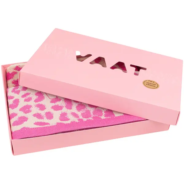 VAAT Thee-en-Keukenhanddoek-Giftset Leopard Roze-Zand: Deze gift box bevat een thee- en keukenhanddoek voor leopard én pink addicts. De doeken zijn uitgevoerd in een roze / zand leopard dessin. De theedoeken zijn van 100 procent dubbel jacquard geweven katoen, wat een zwaardere kwaliteit is. Het formaat van de theedoek is 50 x 70 cm en van de handdoek 50 x 60 cm