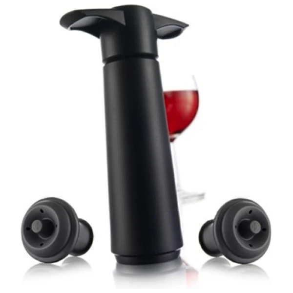 Vacu Vin Wijnpomp Zwart-en-2-doppen
