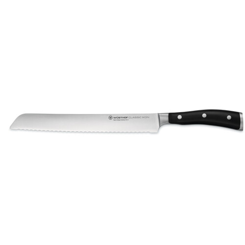 Wüsthof Classic Ikon Broodmes-23cm: Het gekartelde lemmet snijdt door alle korsten, knisperig gebraad en zelfs door het zwoerd van spek.