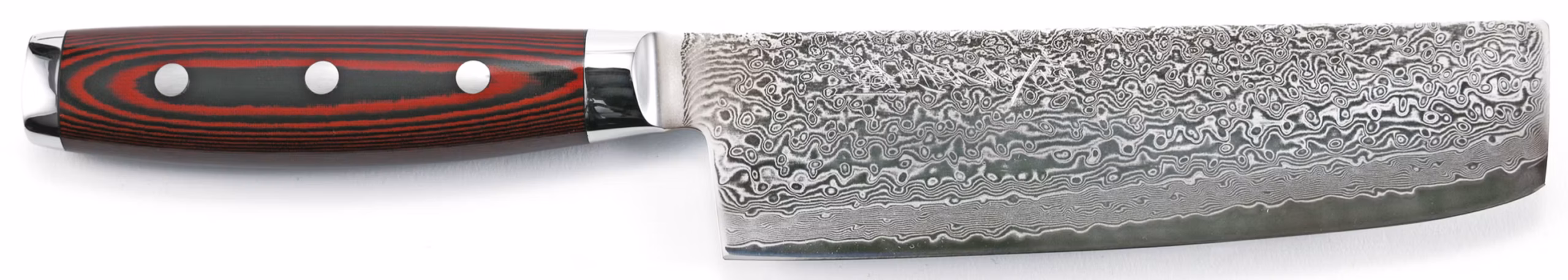 Yaxell Super Gou Nakiri-16.5cm : De Yaxell Super Gou serie, vervaardigd in het Japanse Seki City, belichaamt de perfecte harmonie tussen esthetische schoonheid en uitzonderlijke prestaties. Een nakiri blinkt uit in het zeer precies snijden van groente, veel preciezer dan met een gemiddeld koksmes. Denk aan het snijden van julienne of brunoise: dat gaat met een nakiri kaarsrecht en moeiteloos. Hoewel de vorm wellicht wat weg heeft van een hakmes is een nakiri geen hakmes. Het is een dun en fijn mes om mee te snijden.
